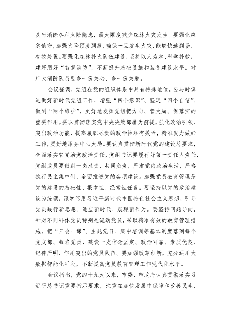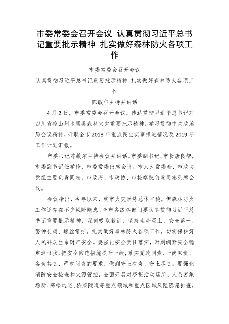 市委常委会召开会议 认真贯彻习近平总书记重要批示精神 扎实实行森林防火各项工作
