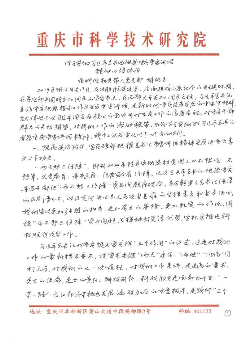 学习贯彻习近平总书记视察重庆重要讲话精神心得体会 - 胡绍玉