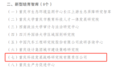 院战略院公司入选第二批重庆市新型智库