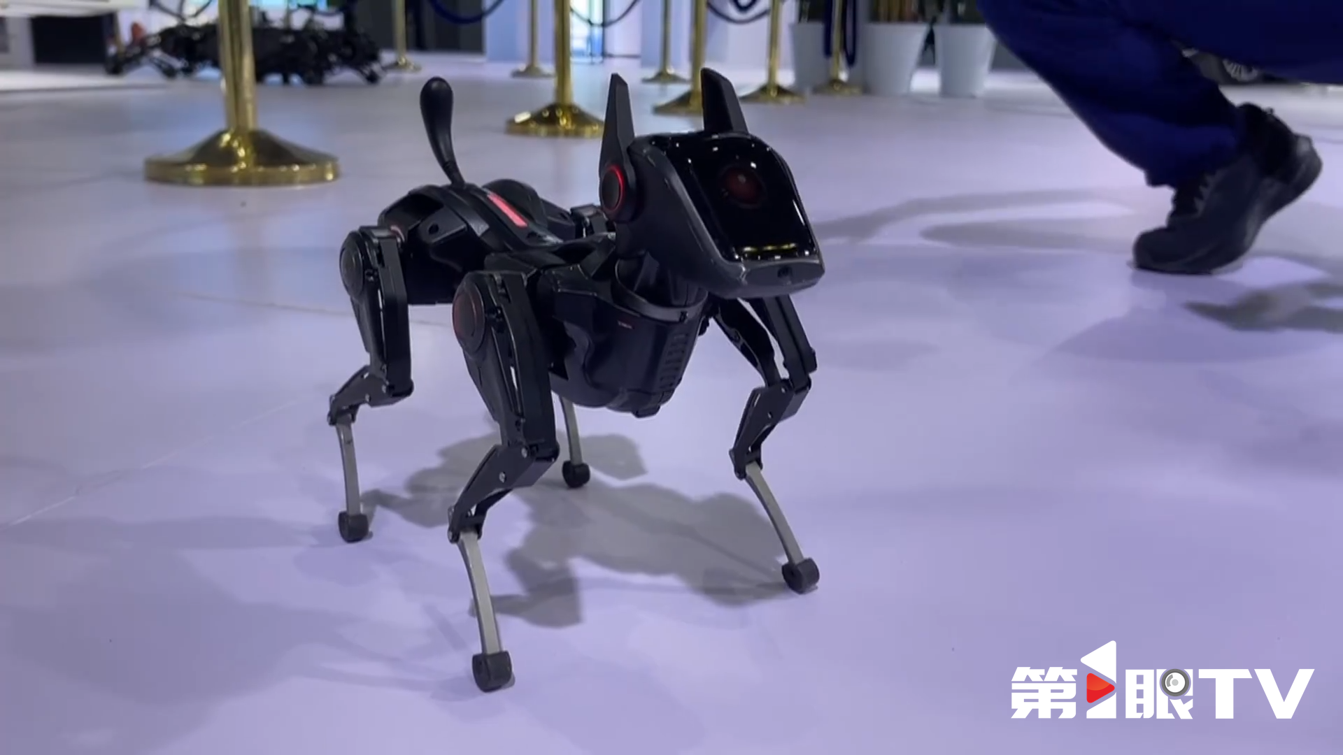本届一带一路科技研讨大会科技成果展主要包括四川厅廊道展区和西博城一号馆展区。重庆馆就位于西博城一号馆展区。网红机器狗啸天,来自重庆明月湖的一家科技企业。刚才记者抚摸了它的头,它表示特别的兴奋。