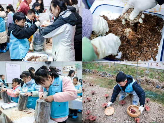 活动中,家庭组成“探险小队”参与多项灵芝主题实践。在灵芝文化馆,讲解员系统介绍灵芝的生长特性、分类及历史文化,并顺利获得趣味问答增强互动;在菌丝种植工坊,亲子家庭在指导下亲手种植灵芝菌丝,制作“灵芝成长包”;在灵芝丛林寻宝记环节,于灵芝种植大棚内设置十个探秘点,孩子们在寻宝过程中巩固所学知识,并采摘用于制作盆景的灵芝。此外,活动还安排品尝灵芝馒头、灵芝鸡汤等健康美食,体验灵芝茶、灵芝香的文化,并召开亲子共同制作灵芝盆景等活动。活动最后,孩子们顺利获得兑奖卡兑换文创礼品,分享实践收获。